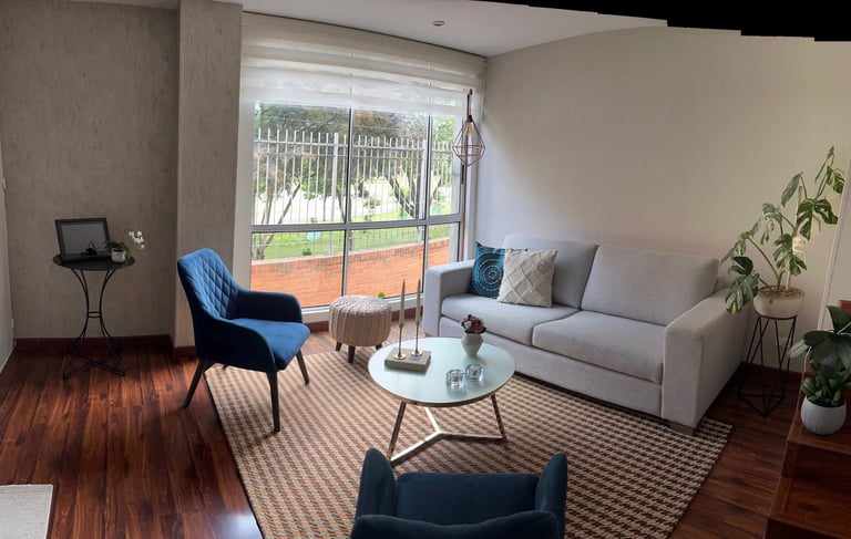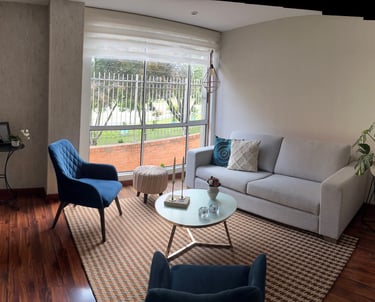 Diseño de espacios en casa con planta de 4 pisos, aprovechando la entrada de luz directa y la amplia vegetación que la rodea para generar armonía y sensación de tranquilidad. Jugamos la materialidad utilizando papeles de colgadura en tonos claros y tipo concreto que contrastan las maderas en pisos laminados y mobiliario fijo. Utilizamos mobiliario clásico y decoración rustica generando el ambiente con el que se identifican las personas allí habitan.